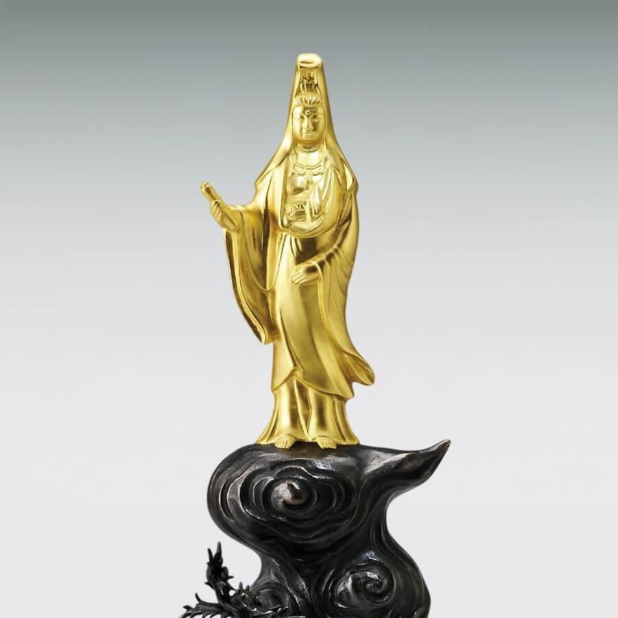龍観音像 H38cm|金箔仕上げ・ブロンズ製仏像|般若純一郎:原型制作