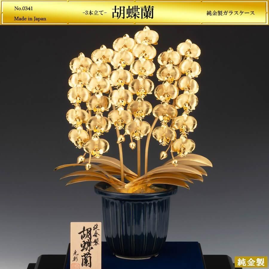 胡蝶蘭3本立て|純金製ガラスケース3タイプ