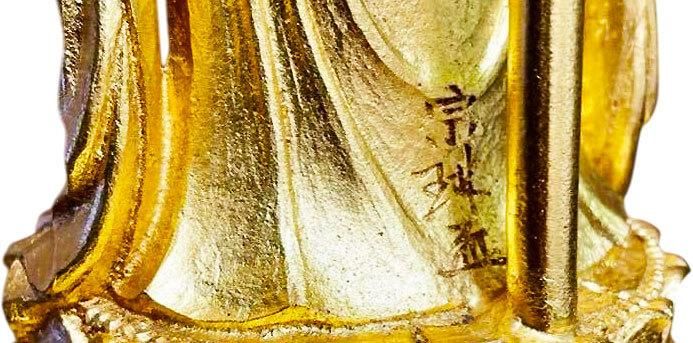 本品は、現代仏教美術を代表する 松久宗琳(まつひさそうりん)の作品(木彫の原型)をもとに、高度な精密鋳造技術と熟練の伝統技術を持つ国内一流の製作工房が復元した御尊像です。