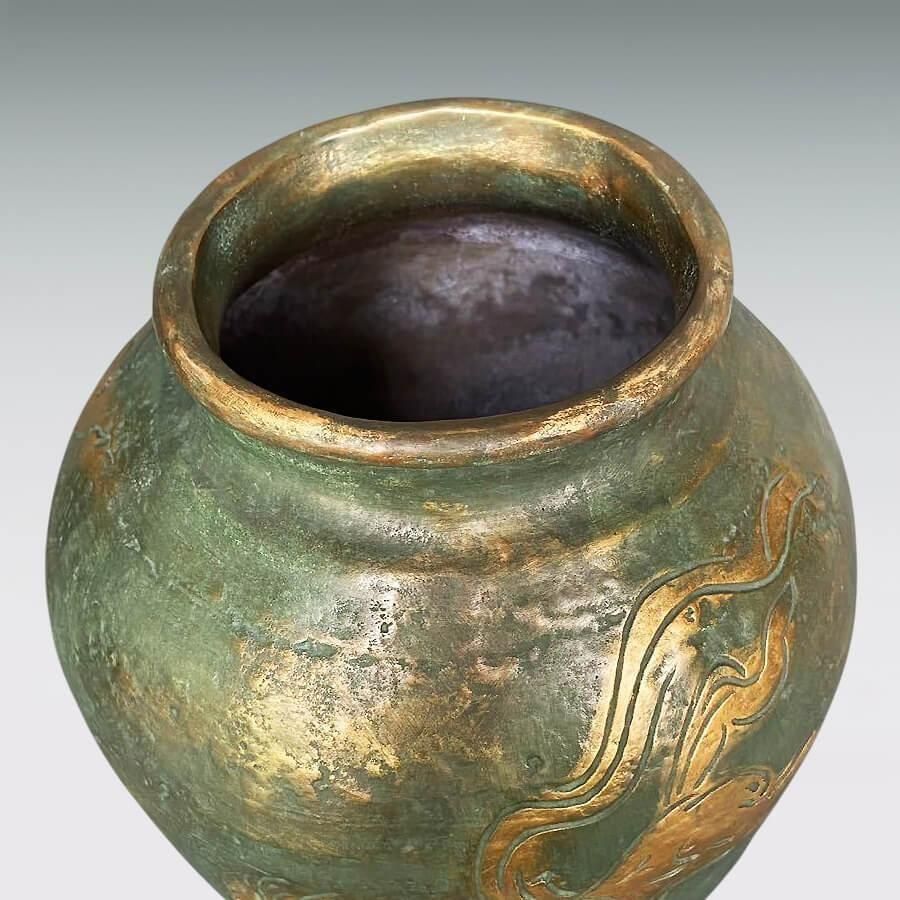 美しい鋳肌(いはだ)、巧緻(こうち)な模様など、美術鋳造の難しさをクリアした繊細な技が織り成す華麗な造形美に思わず目を奪われる気高さです。