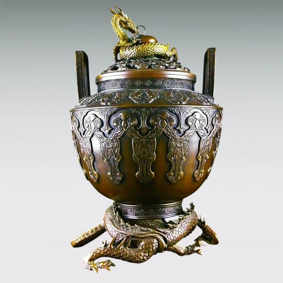 龍足雲龍蓋香炉 H35cm|銅製香炉|竹中正晴:原型制作