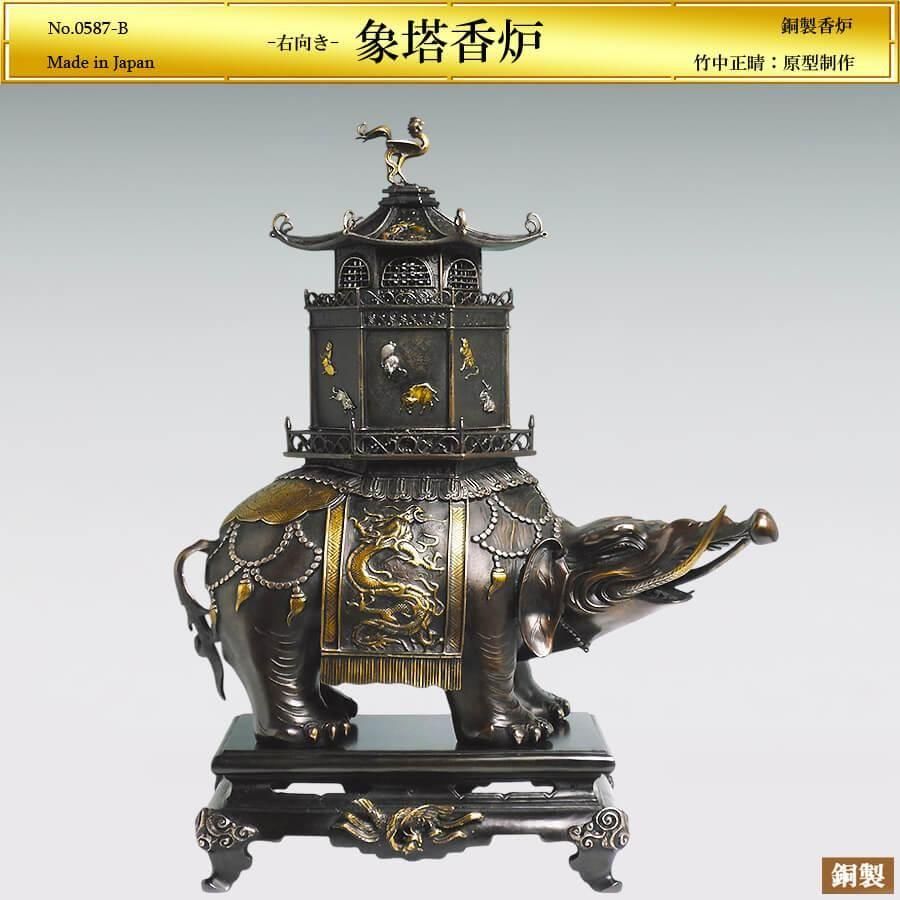 象塔香炉 左向き H53cm|銅製・漆びき金銀銅差しメッキ|竹中正晴:原型制作