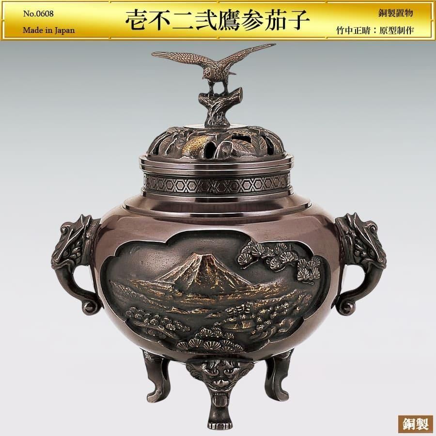 壱不二 弐鷹 参茄子香炉」右向きの銅製です。