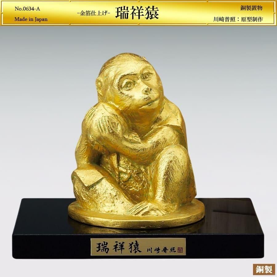 申 瑞祥猿 H13.2cm|銅製・金箔仕上げ置物|川崎普照:原型制作