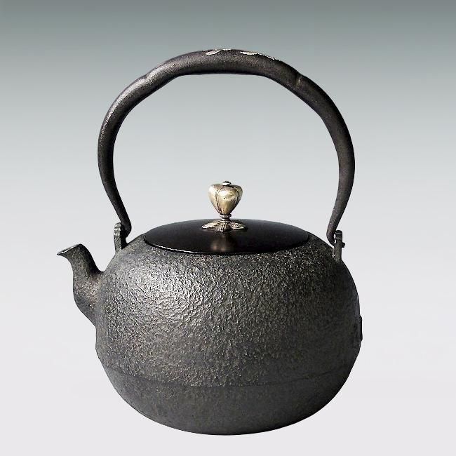 多彩な技法にて鋳造後に彫金や着色など加工を施した鉄瓶で、選りすぐった名工が型取りから始まり、鋳造、仕上げ、着色、象嵌など各工程に作り上げた逸品です。