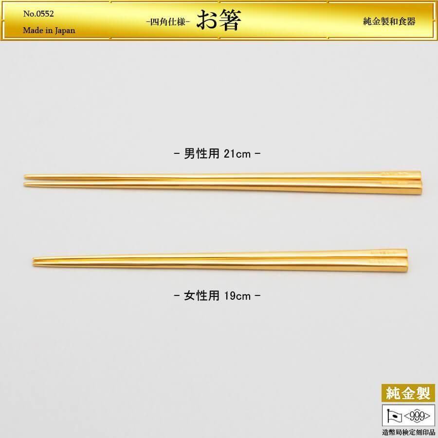 お箸 四角仕様 H19〜21cm|純金製3タイプ