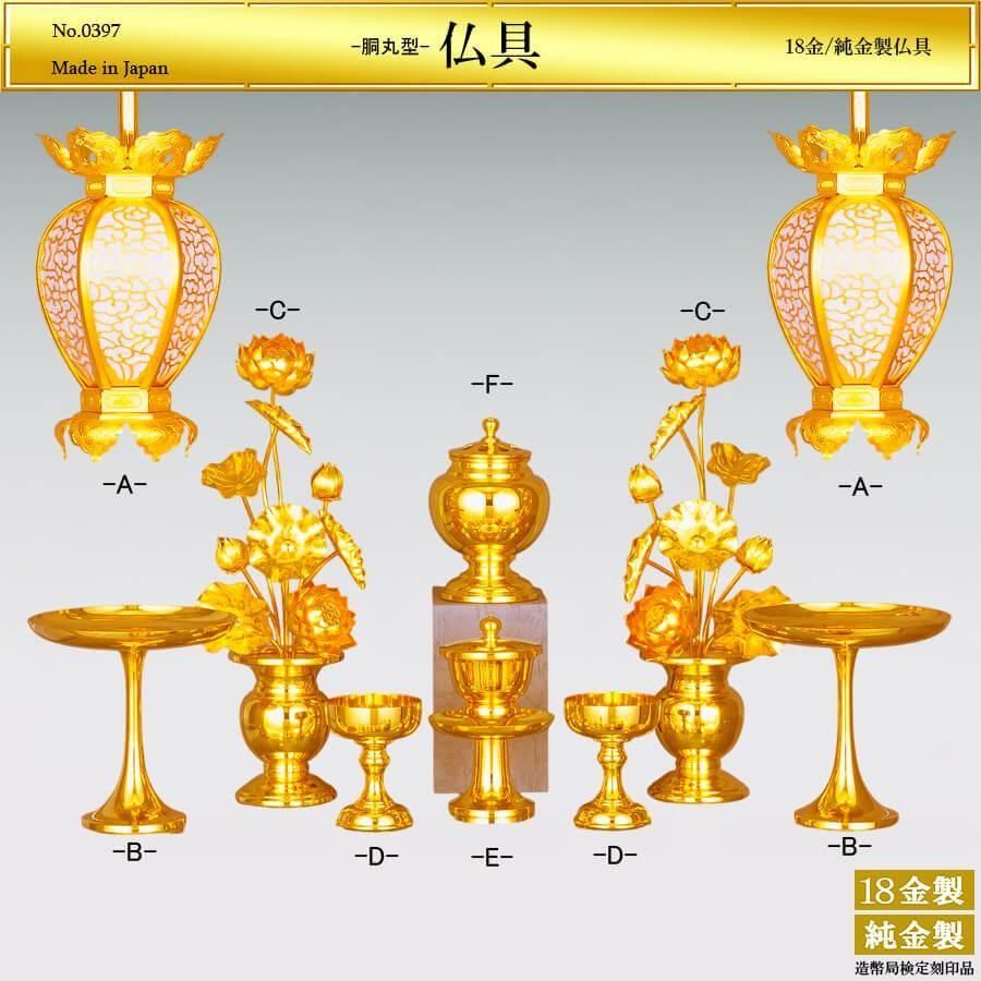 仏具6品揃い 胴丸型 純金製仏具|18金製灯籠